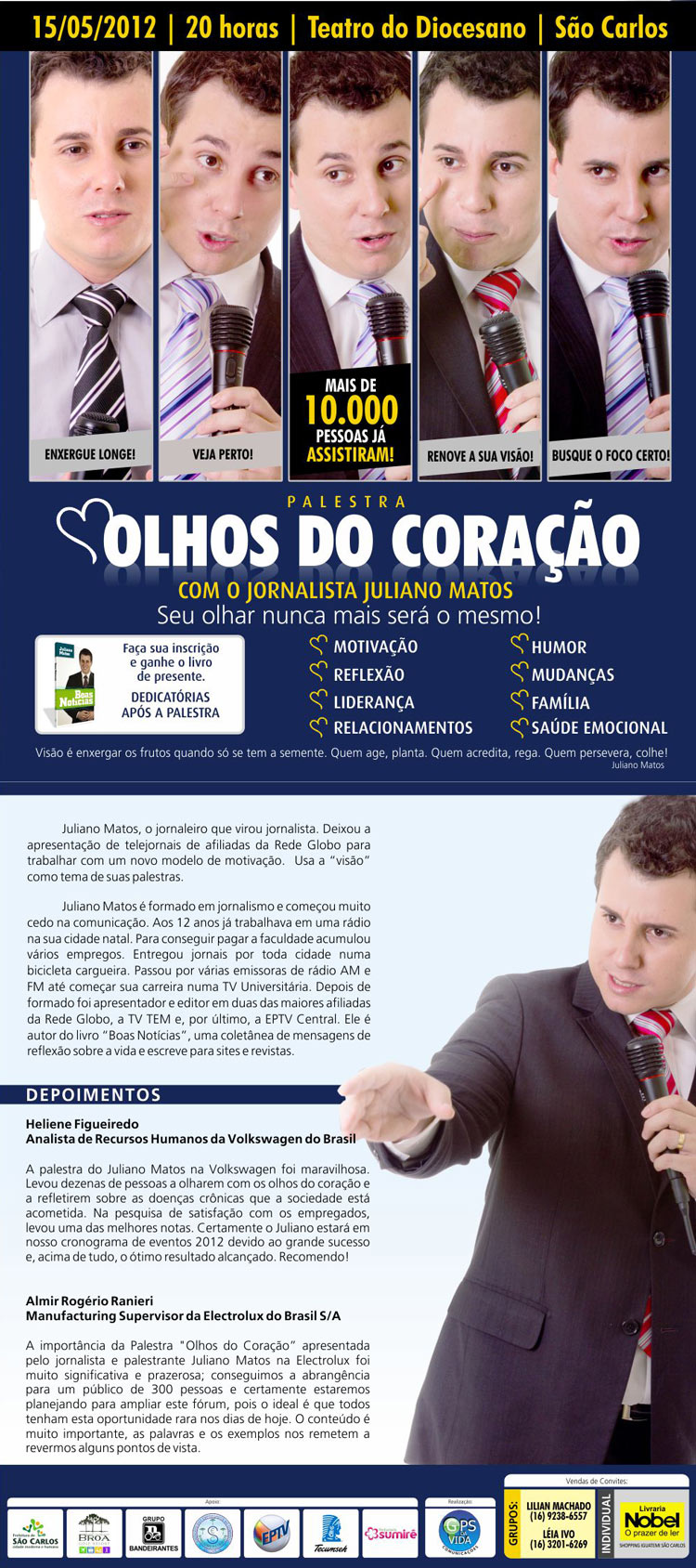 Apresentação única em São Carlos da palestra que foi destaque nos últimos meses em grandes empresas como