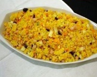 Farofa de Abacaxi 3 colheres (sopa) de creme vegetal BECEL 1 cebola pequena picada 1 cenoura grande ralada no ralo grosso 300 g de peito de peru ralado no ralo grosso 1 maçã verde média cortada em cubos meia xícara (chá) de uva passa sem semente 1 xícara e meia (chá) de ADES sabor abacaxi 2(chá) de farinha de milho 1 colher (chá) de sal MODO DE PREPARO: Em uma panela, aqueça o creme vegetal BECEL em fogo médio, junte a cebola e a cenoura e refogue por 2 minutos. Acrescente o peito de peru, a maçã, a passa e o ADES sabor abacaxi. Cozinhe por 3 minutos ou até começar a ferver. Adicione a farinha e o sal, mexendo sempre até obter uma farofa úmida e homogênea. Sirva quente ou fria. |