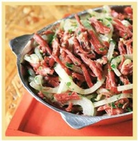 Carne Seca Desfiada - 700 g de carne seca de boa qualidade - 2 cebolas grandes - 1 dente de alho amassado - 1 colher (sopa) de cebolinha cortada em rodelinhas - 1 colher (sopa) de salsinha picada - 1 colher (sopa) de coentro picado - 2 colheres (sopa) de manteiga - 2 colheres (sopa) de azeite - 1 colher (sopa) de vinagre - Sal a gosto Maneira de Preparar Corte a carne em quatro pedaços e coloque de molho de véspera. Troque a água algumas vezes, para que perca o sal. No dia de preparar dê uma fervura na carne. Cozinhe na panela de pressão com água, por cerca de 30 minutos, ou até amolecer. Quando estiver cozida retire da panela, escorra, deixe esfriar e desfie com a mão. Em uma frigideira aqueça a manteiga e o azeite. Coloque a carne seca desfiada para fritar por igual. Corrija o sal. No final adicione o vinagre e refogue mais um pouco, para ficar crocante. Retire da frigideira e reserve. Descasque a cebola e corte-a ao meio, no sentido do comprimento e fatie em tiras finas. Na mesma frigideira acrescente um pouco de azeite e refogue o alho e a cebola, junte a carne seca e refogue mais um pouco. Na hora de servir polvilhe com salsa e cebolinha. |