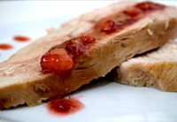 Peito de Peru ao Molho de Frutas Vermelhas 1 kg de peito de peru 15 g de alecrim 15 g de manjericão 15 g de hortelã 15 g de salsinha 1 cálice de vinho branco 10 g pimenta do reino Sal a gosto 1 polpa de morango 1 polpa de framboesa 1 polpa de amora Adoçante para forno e fogão a gosto. Modo de Preparo Deixe o peito de peru marinando com vinho e as ervas, sal e pimenta durante 24 horas. No dia seguinte coloque no forno para assar durante 1 hora e coberto com papel de alumínio. Depois retire o papel de alumínio e deixe dourar. Enquanto isso prepare o molho, colocando as polpas de morango, framboesa e amora numa panela com adoçante a gosto. Depois de assado sirva com molho de frutas vermelhas. |