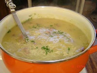 Sopa de Mandioca com Paio e Calabresa 1 kilo de mandioca 3 cubos de caldo de galinha 1/2 cebola picada Sal Pimenta 1 paio em cubinhos 1 lingüiça calabresa em cubinhos 4 colheres d sopa de azeite Como Fazer Em uma panela aqueça o azeite refogue a cebola, junte os cubos de caldo de galinha, 2 litros de água e a mandioca cortada em pedaços. Cozinhe ate a mandioca estar bem macia. Bata no liquidificador, juntando mais água se necessário. Em uma frigideira, frite os cubinhos de paio e de lingüiça calabresa ate começarem a dourar. Junte as lingüiças ao creme de mandioca, e volte ao fogo ate atingir a consistência desejada. Prove o sal e a pimenta. Polvilhe com salsa picada e sirva bem quente. |