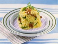 Arroz Natalino com Cogumelos 400g de arroz 1 litro de consomê de frango 1 garrafa de champanha doce 100g de cebola picada 2 colheres (sopa) de manteiga 200g de creme de leite light 300g de cogumelos em lâminas 1/2 xícara de salsinha picada sal a gosto Modo de preparo: Cozinhe o arroz com o consomê de frango. Leve para refogar a cebola com a manteiga, acrescente os cogumelos e o champanhe. Misture muito bem, acrescente o arroz, o creme de leite e a salsinha. Coloque sal o suficiente. |