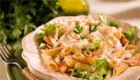 Salada de Macarrão - 1/2 pacote de macarrão tipo fuzili - 1 xícara (chá) de tomate cereja cortado ao meio - 2 xícaras (chá) de presunto em cubos - 2 xícaras (chá) de queijo prato em cubos - 1 xícara (chá) de cenoura cozida em cubos - 1 1/2 xícara (chá) de maionese - 1/2 xícara (chá) de creme de leite - orégano a gosto - sal Ingredientes para opção 2: - 1/2 pacote de macarrão tipo gravatinha - 2 xícaras (chá) de atum ralado - 1 xícara (chá) de tomates picados - 3 dentes de alho frito - 1 cebola ralada - 1 xícara (chá) de queijo mussarela em cubos - cheiro verde a gosto - sal Modo de Preparo: Em uma panela coloque os 2 litros de água e deixe ferver com sal, em seguida coloque o macarrão e deixe cozinhar até que fique al dente. Quando estiver pronto escorra o macarrão e coloque em uma travessa. Salada: Em um recipiente, misture a maionese e o creme de leite. Em seguida coloque sobre a massa e misture bem. Acrescente os demais ingredientes e misture. Sirva frio. Opção 2: Macarrão: Em uma panela coloque os 2 litros de água e deixe ferver com sal, em seguida coloque o macarrão e deixe cozinhar até que fique al dente. Quando estiver pronto escorra o macarrão e coloque em uma travessa. Salada: Em um recipiente, misture o atum com o alho e a cebola. Coloque esta mistura com o tomate, o queijo branco e o cheiro verde na massa e misture. Sirva frio. |