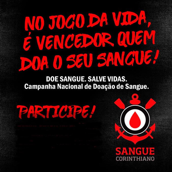 A Campanha Sangue Corinthiano é uma corrente direcionada a torcedores do Corinthians, preferencialmente doadores de sangue e multiplicadores da idéia, principalmente devido ao tamanho dessa torcida, com mais de 30 (trinta) milhões de torcedores. O objetivo é colaborar com os hemocentros do país na reposição dos estoques de bolsas de sangue. Como a campanha busca salvar vidas, o convite é estendido a toda a população.