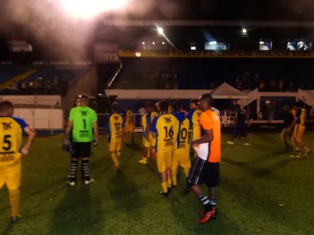 Com um a menos o São Carlos esperava o adversário para definir a partida em um contra-ataque e criou oportunidades claras para definir. Aos 25 minutos Gil, em cobrança de penalidade máxima, virou o jogo para os donos de casa. No minuto seguinte Vinicius tocou de cabeça após cruzamento pelo lado esquerdo e deixou tudo igual de novo.
