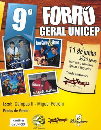 No dia 11 de junho (sexta-feira), o Centro Universitário Central Paulista – Unicep realiza o 9º Forró Geral, a tradicional festa junina da instituição. O evento acontece às 20hs na Unicep, Campus Miguel Petroni, localizada na Avenida Miguel Petroni, 5111.