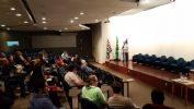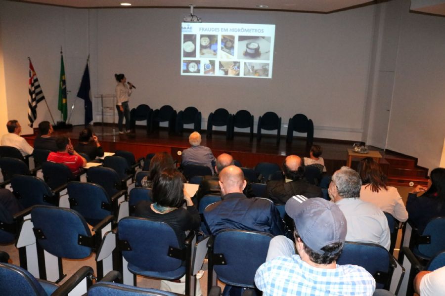 Antes do início da aula, Lucimara Zambon, gerente de Controle de Micromedição, e Rogério Correa Bernardes, engenheiro mecânico, ambos do SAAE São Carlos, apresentaram ações de combate as ligações clandestinas desenvolvidas pela autarquia. Encerrando o evento o professor Marco Reali, da USP São Carlos, falou sobre a perda de água nas ETAS (Estação de Tratamento de Água) na lavagem de filtros.