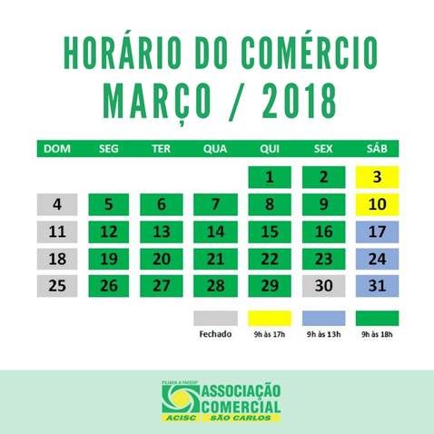 Confira o horário do comércio de São Carlos também no Facebook da ACISC: www.facebook.com/aciscsaocarlos.