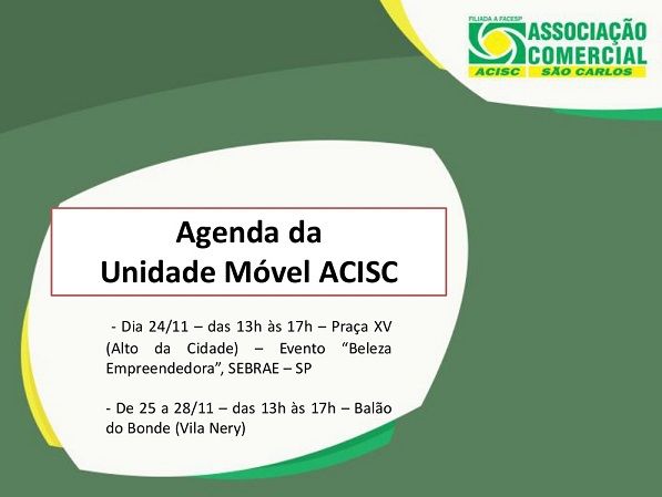 Agenda da Unidade Móvel da ACISC - de 24 a 28/11 |