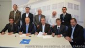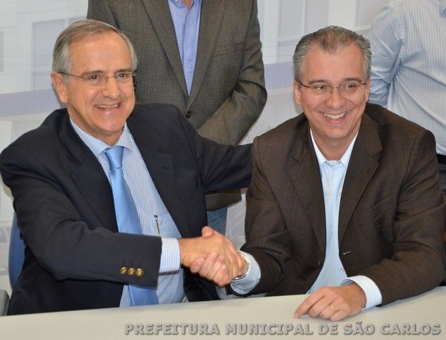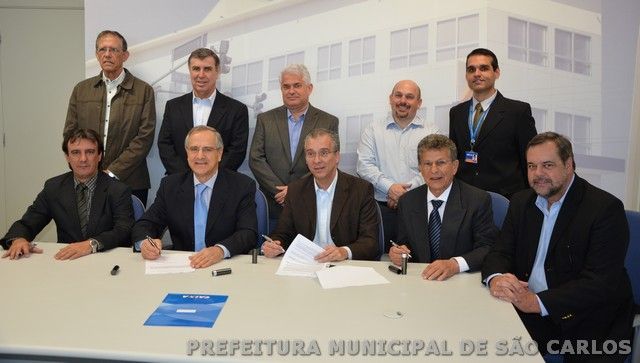 O convênio que prevê o maior investimento a fundo perdido já conquistado pelo município de São Carlos, foi assinado nesta sexta-feira (30), na sede administrativa da Caixa Econômica Federal, em Piracicaba. O prefeito Paulo Altomani e o presidente do SAAE - Serviço Autônomo de Água Esgoto, Sérgio Pepino sacramentaram a obtenção do recurso junto com o superintendente regional da CEF, Carlos Henrique Almeida Custódio. O convênio faz parte do programa PAC 2, com o Ministério das Cidades, no valor 28,9 milhões, para a construção do terceiro módulo da Estação de Tratamento de Esgoto (ETE) do córrego do Monjolinho. Acompanharam Altomani à Piracicaba o vereador, presidente da Câmara Municipal, Marquinho Amaral e o ex-Deputado Federal, Lobbe Neto.