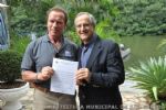 Preocupado com a preservação do Meio Ambiente e investindo no desenvolvimento sustentável para a cidade de São Carlos, o prefeito Paulo Altomani, esteve reunido na tarde de domingo (27), no Rio de Janeiro, com o ex-governador norte-americano e fundador da Organização Não-Governamental Regions of Climate Action (R20), Arnold Schwarzenegger e com o diretor da ONG na América Latina, Jorge Pinheiro Machado, para a entrega de uma carta reafirmando de intenção do município, na implantação de iluminação pública a base de LED (Light Emitting Diode).