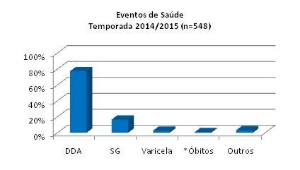 Na temporada 2014/2015 foram notificados 548 eventos de saúde, sendo a Doença Diarreica Aguda (DDA) a mais comum, seguida por Síndromes Gripais (SG). Nesta temporada 2014/2015, apenas 1 (hum) surto, de Doença Diarreica Aguda, foi registrado em toda a temporada. O agente etiológico identificado como causador do surto foi o Norovírus, tendo apresentado uma incidência de 13,9% (82 casos) entre passageiros e 2,4% (9 casos) em tripulantes.