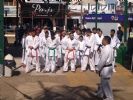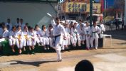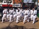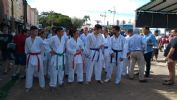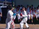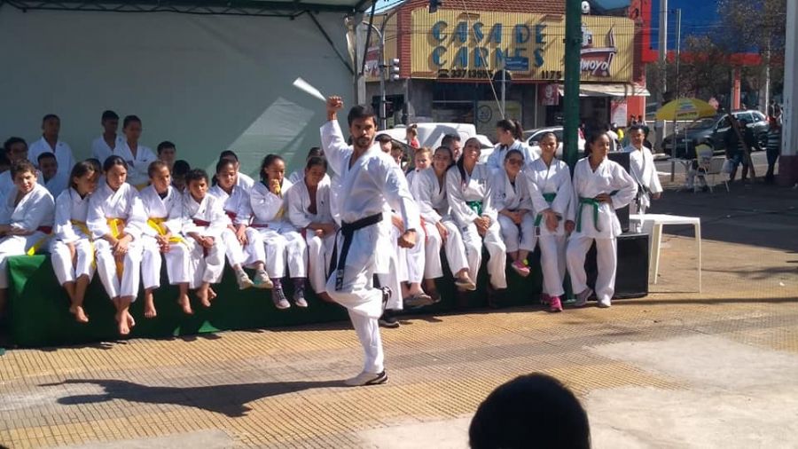 Professor Adriano Wada conduziu a apresentação do Karate demonstrando técnicas de bases, postura e técnica de golpes, também foram foram demonstrados os katas(formas de combate) e shiai kumite(luta).