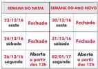 Nas semanas de Natal e Ano Novo, os postos Poupatempo não funcionarão nas sextas e sábados, dias 23, 24, 30 e 31 de dezembro. Já nos dias 26 de dezembro e 2 de janeiro, após os feriados, todas as 72 unidades do programa abrirão às 12h. O horário normal de funcionamento será retomado na terça-feira.