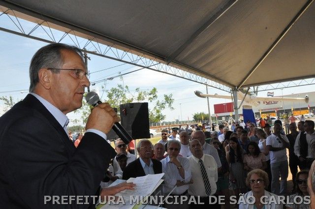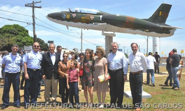 Um dos momentos mais esperados das programação de aniversário dos 156 anos de São Carlos aconteceu neste domingo, (3): o prefeito Paulo Altomani, ao lado da primeira dama e presidente do Fundo Social de Solidariedade, Alice Altomani, secretários e inúmeros convidados, participou da solenidade de entrega do monumento que ostenta um exemplar do avião Xavante, na rotatória da Rua Miguel Petroni com a Avenida João Dagnone, no Santa Felícia, que compõe o complexo viário Fernando Arruda Botelho.