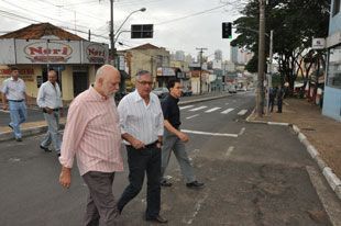 Durante a vistoria o prefeito conversou com comerciantes daquele trecho da Avenida São Carlos. Ele agradeceu a compreensão de todos pelo transtorno causado por conta de a avenida estar interditada para a obra.