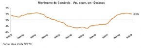 O indicador Movimento do Comércio é elaborado a partir da quantidade de consultas à base de dados da Boa Vista SCPC, por empresas do setor varejista. As séries têm como ano base a média de 2011 = 100, e passam por ajuste sazonal para avaliação da variação mensal. A partir de janeiro de 2014 houve atualização dos fatores sazonais e reelaboração das séries dessazonalizadas, utilizando o filtro sazonal X-12 ARIMA, disponibilizado pelo US Census Bureau.