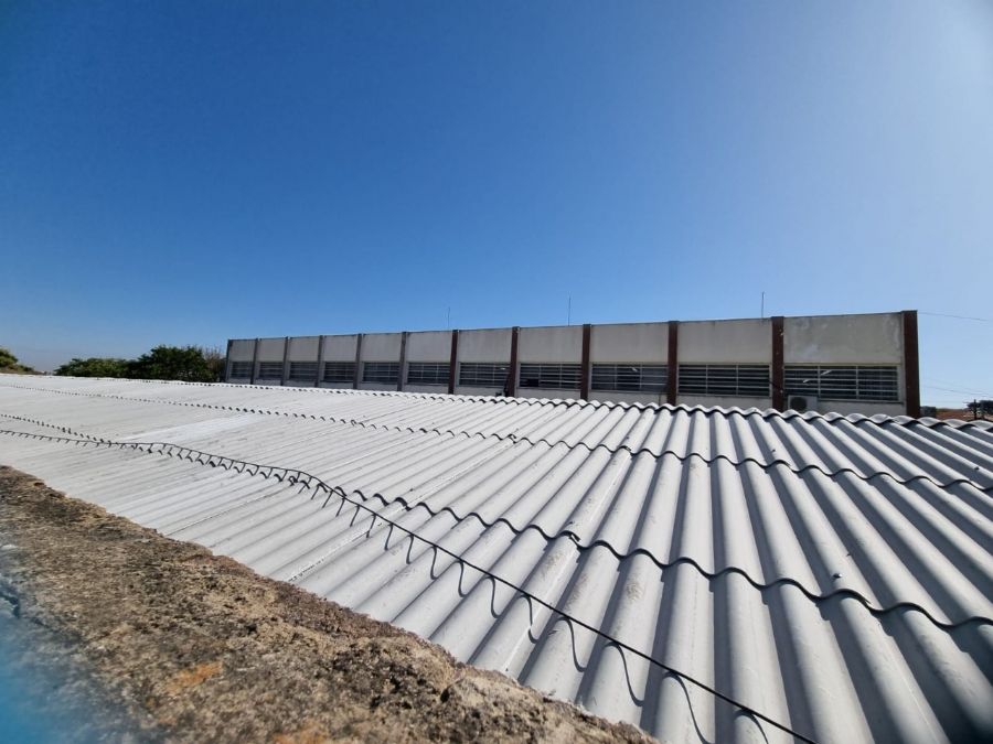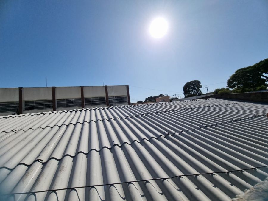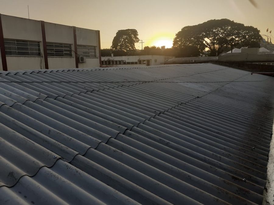 A obra já está sendo finalizada com a troca de madeiramento, colocação de tubulação de captação de águas pluviais e novas telhas de fibrocimento.