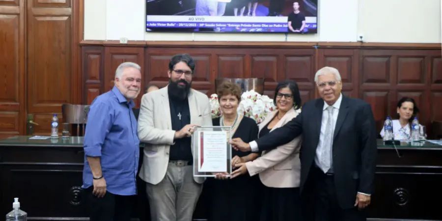 A Câmara Municipal realizou na noite desta quarta-feira (20), uma sessão solene onde foi entregue o Prêmio Santo Dias de Direitos Humanos, ao Padre João Victor Bulle, em reconhecimento aos relevantes trabalhos realizados junto aos cidadãos em situação de rua.
