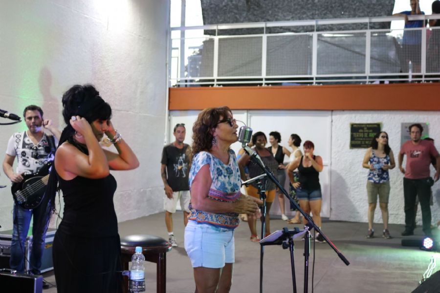No encerramento do show da Banda Vinil 78 a cantora Regina Dias subiu ao palco e soltou a voz com Andreia, vocalista da Vinil, interpretando “Como Nossos Pais”, de Elis Regina.