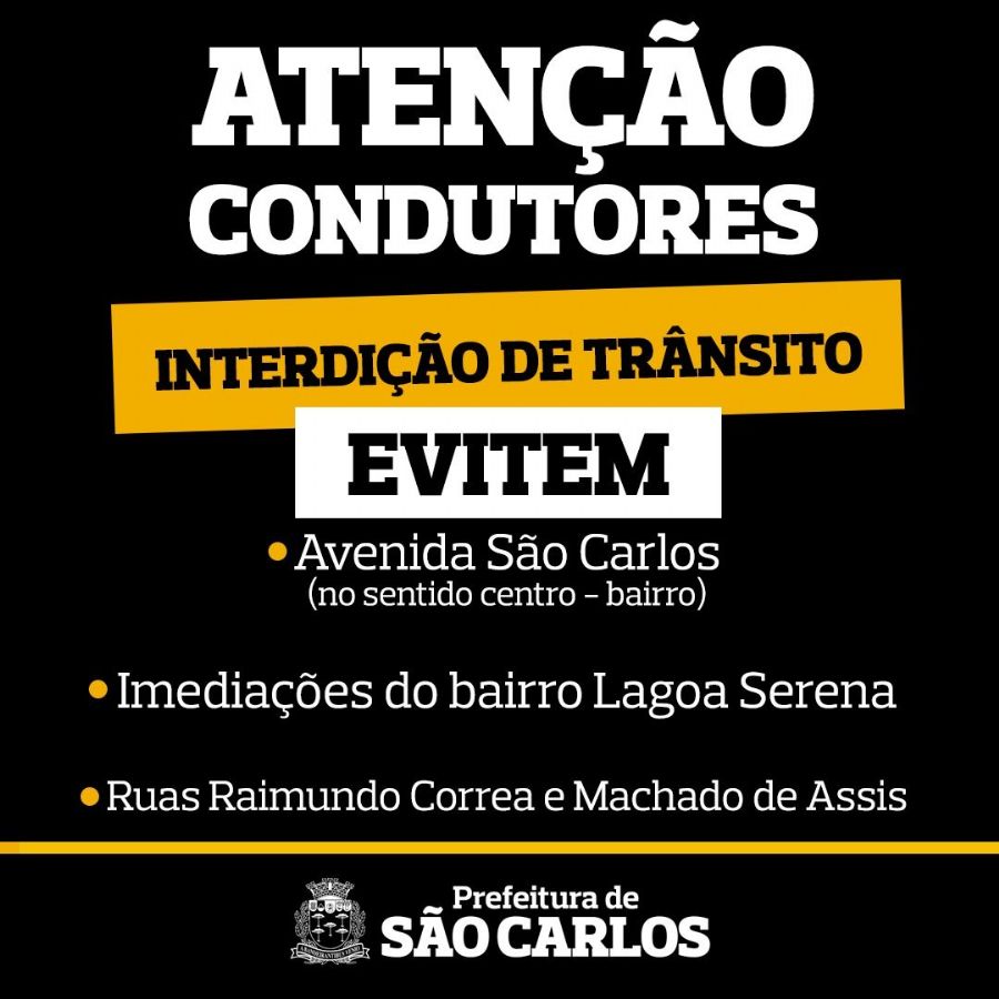 Sendo assim, a orientação é que os motoristas evitem a Avenida São Carlos no sentido centro - bairro, e as imediações do bairro Lagoa Serena, optando por rotas alternativas. Ao longo do dia, os trechos entre a rua Raimundo Correa e a Machado de Assis também serão fechados para a realização dos serviços.
