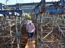 Construída em concreto armado, está sendo usada na obra a técnica de cimbramento superior, que sustenta as formas do concreto e suporta o peso do aço e também do concreto fresco. “Essa técnica está sendo utilizada pensando no período de chuvas, que está por vir, já que a estrutura será apoiada nas margens do córrego, onde já temos a fundação pronta, para não haver o perigo de ser arrastada pelas águas”, explicou Márcio.