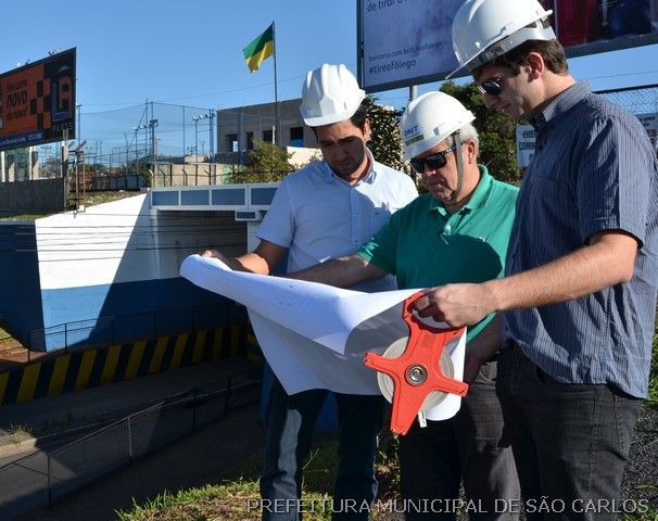 Acompanhados pelo secretário, Marcio Marino, pelo chefe da Divisão de Projetos da Secretaria de Obras, Fernando do Couto Rosa Almeida e pelo engenheiro Mário Henrique Dias Pelissari, o consultor na área ferroviária do DNIT, Marcos Miranda Cabral e o fiscal do convênio entre DNIT e Prefeitura de São Carlos, Tiago Pereira Lopez, analisaram o projeto, vistoriaram o local da obra e nesta quarta-feira (4) foram recebidos pelo prefeito Paulo Altomani e pelo Procurador Geral do Município, Waldomiro Bueno de Oliveira.