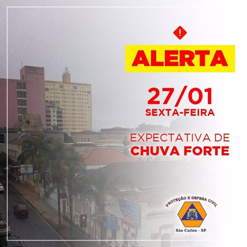 A Defesa Civil São Carlos faz um alerta aos moradores para amanhã, sexta-feira dia 27/01.