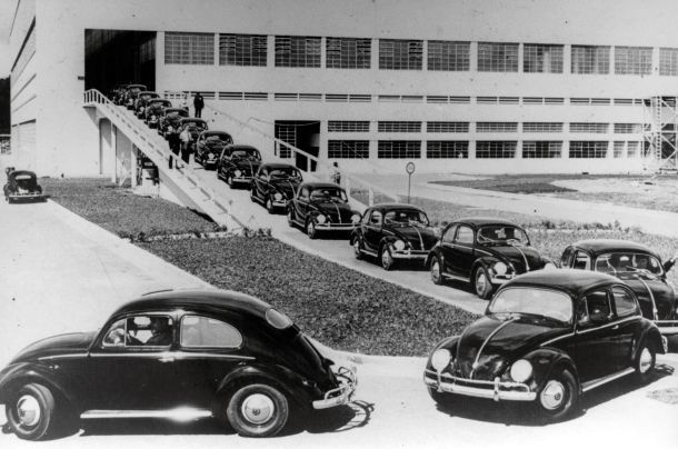 Os primeiros Volkswagen Sedan, fabricados na Alemanha, chegaram ao Brasil em 1950. Pequeno, com motor traseiro refrigerado a ar e um design totalmente diferente do tradicional à época, quando as ruas eram dominadas por grandes sedãs, o carro chamava a atenção por onde passava. Sua capacidade de transportar até cinco pessoas, baixo consumo de combustível e resistência mecânica logo começaram a conquistar consumidores.
