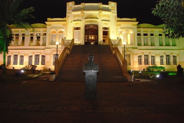 O edifício de estilo eclético, apresenta elementos de influência "art noveau" e neo clássico, pelos volumes curvos do centro e extremidades da fachada principal.