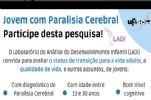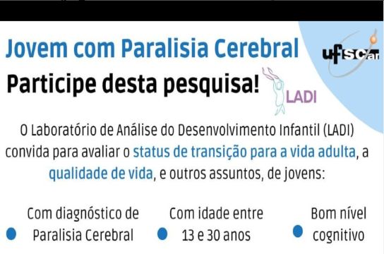 Compreender como está sendo a transição para a vida adulta de jovens com paralisia cerebral (PC) é o objetivo principal da pesquisa que está sendo desenvolvida por integrantes do Laboratório de Análise do Desenvolvimento Infantil (LADI) da UFSCar. O estudo está recrutando voluntários de qualquer região do Brasil para participação remota.