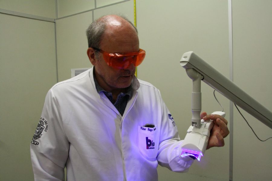 "Observamos que a luz violeta tem energia suficiente para quebrar os pigmentos do dente, da mesma maneira que os géis fazem. A diferença é que, enquanto os géis de peróxido agem de modo mais químico, a luz atua de maneira mais física", explica ele, que desenvolveu esse estudo sob a orientação do Prof. Dr. Vanderlei Bagnato (IFSC/USP) e em parceria com as Profas. Dras. Alessandra Rastelli (Faculdade de Odontologia da Universidade Estadual "Júlio de Mesquita Filho" - UNESP/Araraquara) e Fátima Zanin (Universidade Federal da Bahia - UFBA), e com o Prof. Dr. Aldo Brugnera, da Unicastelo (campus de São Paulo). "O professor Aldo, por exemplo, também tem estudado o clareamento dental através de LED violeta e tem encontrado resultados semelhantes àqueles que obtivemos aqui no Instituto de Física de São Carlos", diz Vitor.