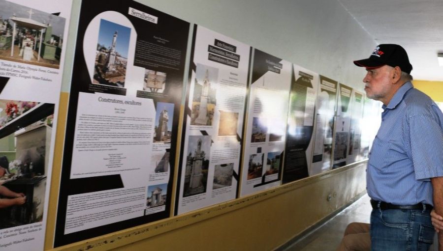 Os 20 painéis apresentam o resultado do estudo e registro dessa história, a partir de uma abordagem histórica e de um sistemático levantamento fotográfico, registrado no livro “A Morada dos Mortos”, do pesquisador da FPMSC Júlio Roberto Osio, lançado em 2016.