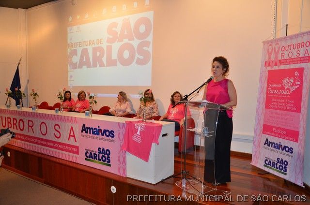 A vereadora Cidinha do Oncológico, que esteve representando a Câmara Municipal, destacou que a campanha existe para mobilizar e levar a mensagem de conscientização para o maior número de pessoas. “Com grande satisfação participo desta campanha e represento o legislativo da Câmara Municipal neste evento de abertura. Segundo estimativas do Instituto Nacional do Câncer (Inca), em 2014, o Brasil poderá ter mais de 570 mil casos de câncer, sendo 57.120 novos casos. Por isso a importância do autoexame nas mulheres jovens e a mamografia das mulheres com idade a partir de 50 anos. O engajamento de nossa cidade nessa campanha mundial é, sem dúvida, uma demonstração do nosso compromisso de alertar as mulheres sobre a importância dos exames periódicos contra o câncer e, sobretudo, sobre as condições do sistema público de saúde para que todas as mulheres tenham acesso ao atendimento necessário. Fico honrada e orgulhosa em ser autora da Lei que criou a Praça Outubro Rosa em São Carlos”.