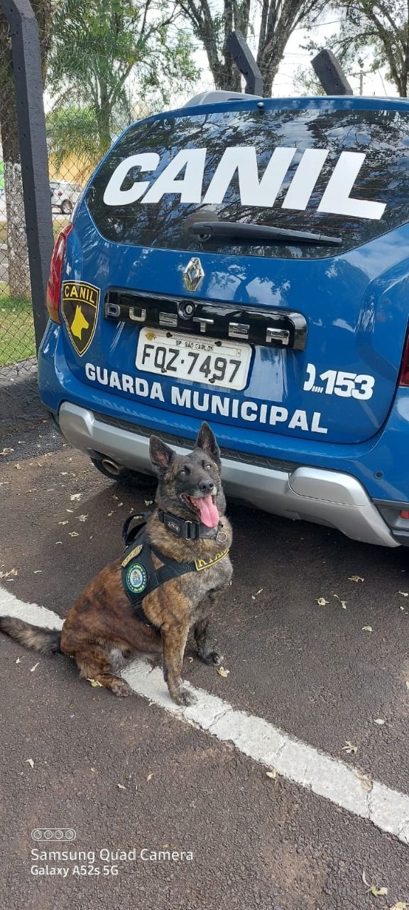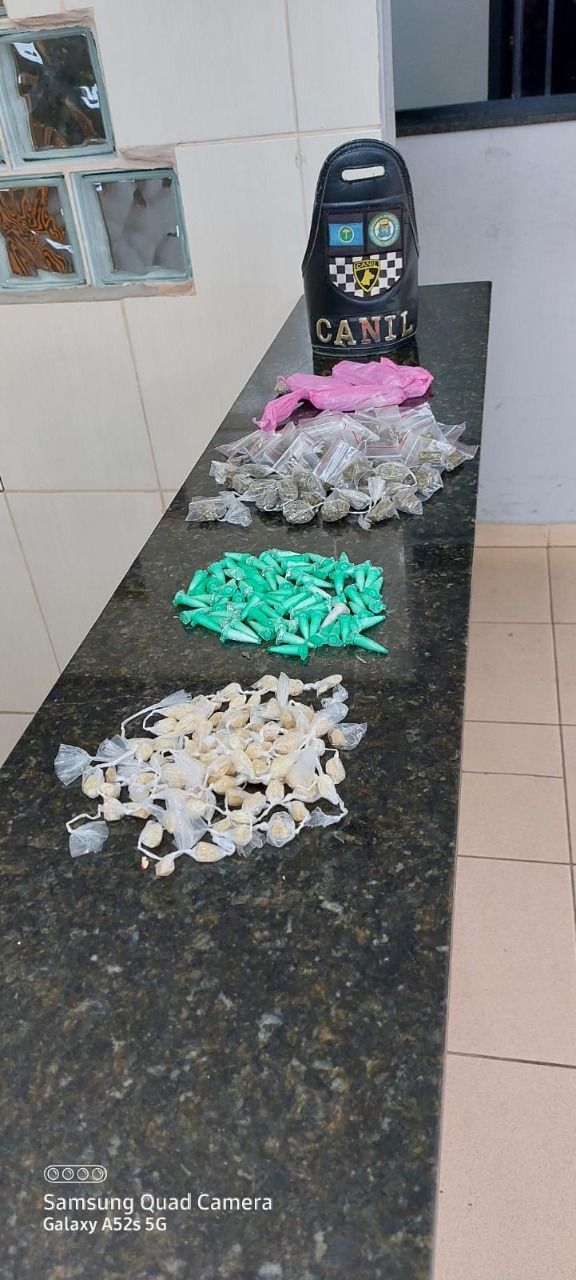 Dando continuidade ao patrulhamento, a farejadora do canil da Guarda Municipal, cachorra Kyara, localizou as drogas que estavam em meio as folhas secas caídas na área. Como não foi possível vincular os produtos ilícitos ao suspeito, os entorpecentes foram apresentados na Central de Polícia Judiciária (CPJ).