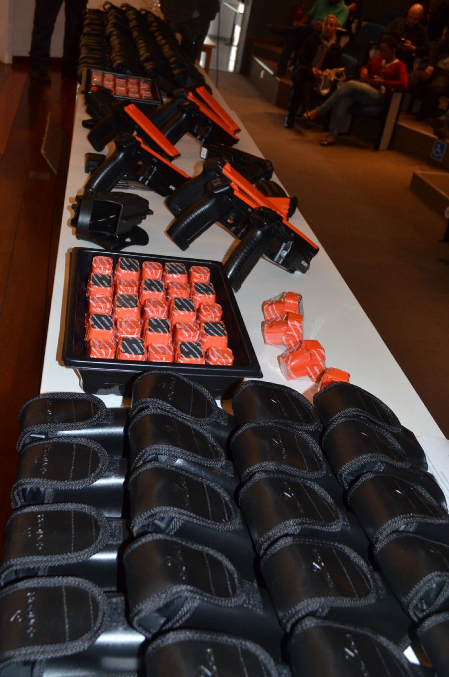 A Guarda Municipal de São Carlos recebeu na manhã desta quarta-feira (6), dez novos equipamentos elétricos incapacitantes (SPARK), 60 cápsulas e 200 sprays de pimenta. A entrega aconteceu no auditório do Paço Municipal, com as presenças do prefeito Airton Garcia, do diretor de Coordenação de Política Institucional da Secretaria de Governo, Samir Gardini, do comandante da Guarda Municipal, Michael Yabuki e dos vereadores Elton Carvalho, Paraná Filho, Moisés Lazarini, Roselei Françoso e Edson Ferreira.