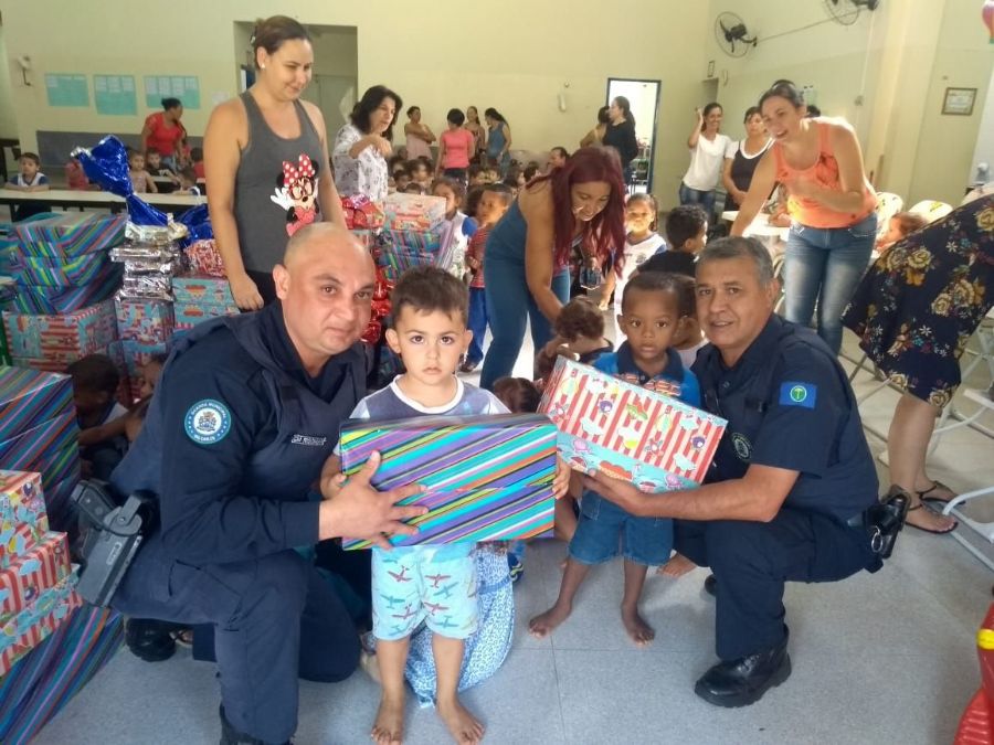 Os guardas municipais de São Carlos deixaram o Natal de 350 crianças do CEMEI Maria Alice Vaz de Macedo, localizada no Cidade Aracy, mais feliz. Na manhã de segunda-feira (10), os guardas entregaram brinquedos às crianças daquela unidade.