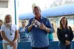O secretário de Educação, Nino Mengatti, começou a entrega do informativo pela Escola Municipal de Educação Básica (EMEB) Angelina Dagnone de Melo, localizada no bairro Santa Felícia, unidade que atende mais de 650 alunos no ensino fundamental.