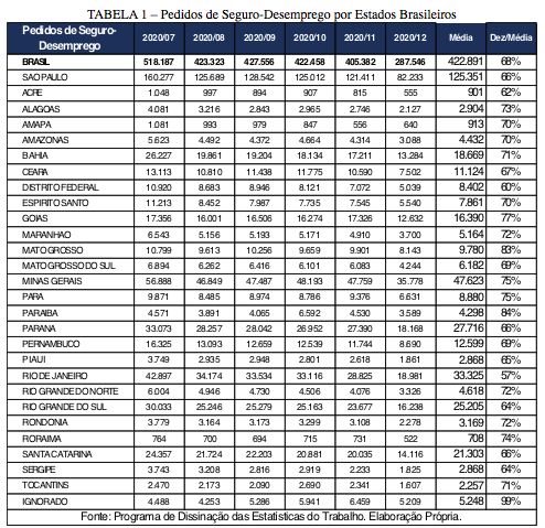 TABELA 1 – Pedidos de Seguro-Desemprego por Estados Brasileiros