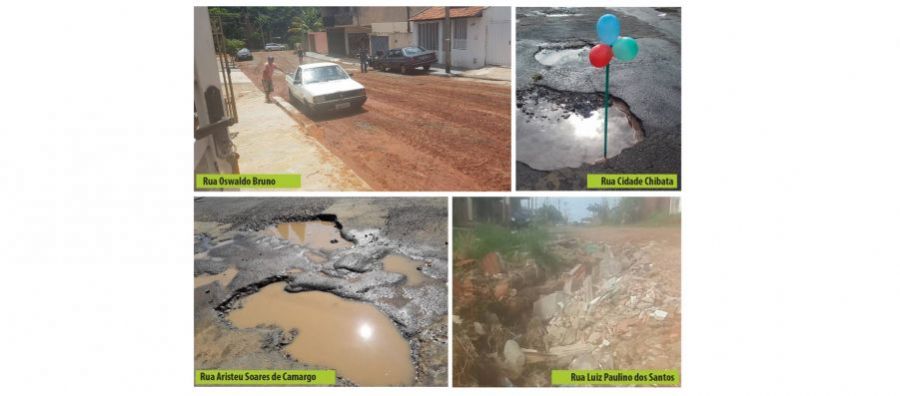 O parlamentar pontuou tapa buraco/recape nas ruas Irineu Rios, no bairro Jardim Beatriz; Sebastião José Alexandre, no bairro Boa Vista; na rua Sebastião Sampaio Osório, no bairro Santa Felícia; Eva Barnabe Lattanzio, no bairro Jardim Medeiros; Professor Italo Savelli, no São Carlos V; rua Doutor Jonas Novaes, no bairro Planalto Paraíso; e as ruas Aristeu Soares de Camargo e Caetano Barion, na Vila São José. Ele fez questão de frisar também a situação caótica da rua Oswaldo Bruno, no bairro Azulville, e da rua Luiz Paulino dos Santos, no bairro Antenor Garcia, além de uma cratera na rua Cidade Shibata, defronte à USF (Unidade de Saúde da Família) do bairro Jardim Itamarati.