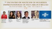 Estão abertas as inscrições para o 7º Encontro de Negócios de Mulheres Empreendedoras de São Carlos e Região, que ocorrerá no dia 19 de novembro (sábado), das 08h às 17h, através de parceria entre o CME (Conselho da Mulher Empreendedora) e a ACISC (Associação Comercial e Industrial de São Carlos).