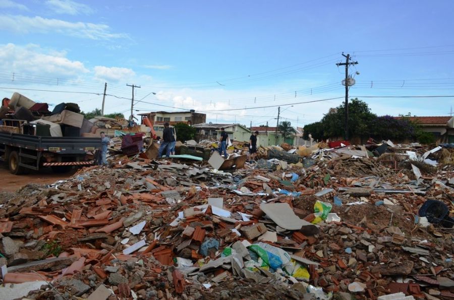 Também foram recolhidos grande quantidade de madeira, espuma, isopor, pedaços de caixa d'água, vasos sanitários, latas, lonas e recipientes plásticos de vários tipos.