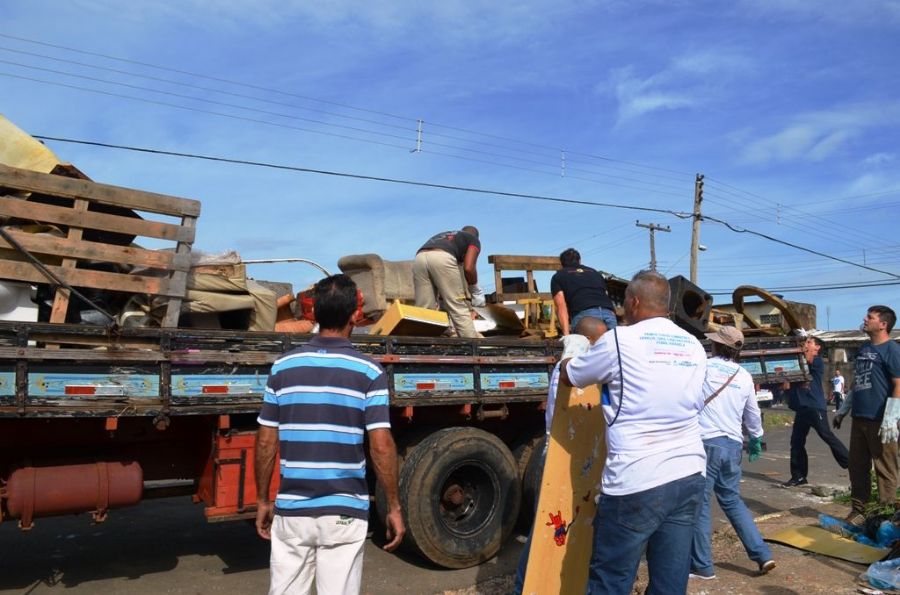 No total foram retirados 111 caminhões, sendo 53 caminhões de entulho, 40 de massa verde, 3 com pneus, totalizando 875 pneus e 15 caminhões somente com sofás descartados não só nos ecopontos, mas em terrenos baldios dos dois bairros.