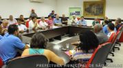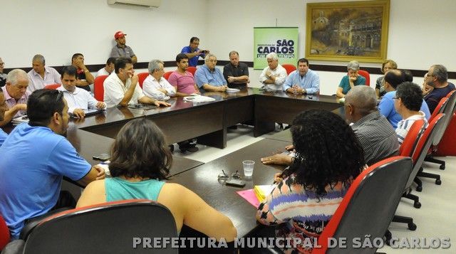 Nesta quinta-feira (10) foi realizada na sala dos ex-prefeitos, no Paço Municipal, uma nova reunião para discutir a questão do reajuste salarial dos servidores públicos. O encontro contou com a presença do secretário municipal de Governo, Júlio Soldado, do secretário de Planejamento e Gestão, Alfredo Colenci, do secretário de Fazenda, José Roberto Poianas, da secretária de Administração e Gestão de Pessoal, Helena Antunes, do presidente da Câmara Municipal, Marquinho Amaral, do presidente do Sindspam (Sindicato dos Servidores Públicos e Autárquicos Municipais), Adail Alves de Toledo, vários vereadores e servidores municipais.