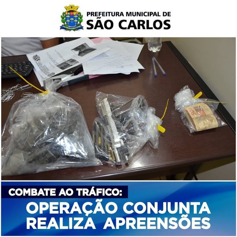 Uma operação conjunta da Polícia Civil e das Guardas Municipais de São Carlos e de Rio Claro de combate ao tráfico de drogas realizada na manhã da última sexta-feira (13), no Jardim Gonzaga, resultou na apreensão de 150 pinos de cocaína (123g), 1 tablete de maconha e 51 trouxinhas (1 kg), 475 pedras de crack e 3 pedras brutas (739g), 2 balanças de precisão, 2 mil tubos de ependorfes vazios e R$ 8.754,00 em espécie. Foram detidos em flagrante 4 homens e 1 mulher.