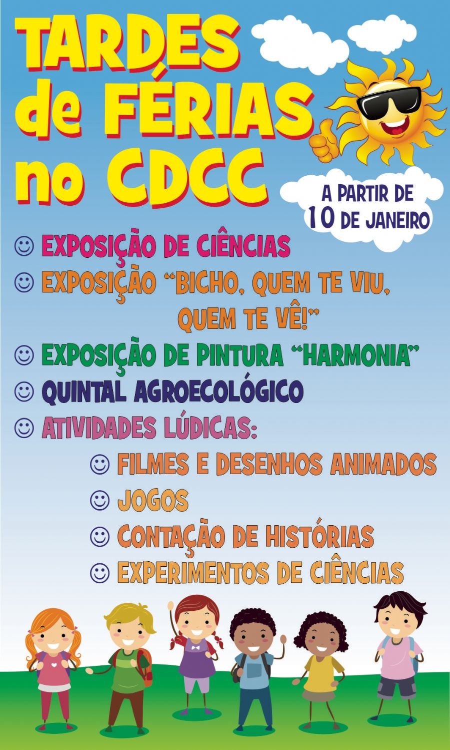 A partir do dia 10 de janeiro, o Centro de Divulgação Científica e Cultural (CDCC) da USP, em São Carlos, vai realizar Tardes de Férias com as seguintes atrações:
