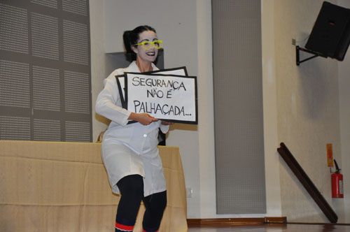 A peça da Cia de Teatro abordou de forma irreverente cuidados que devem ser tomados com instrumentos de segurança no trabalho.