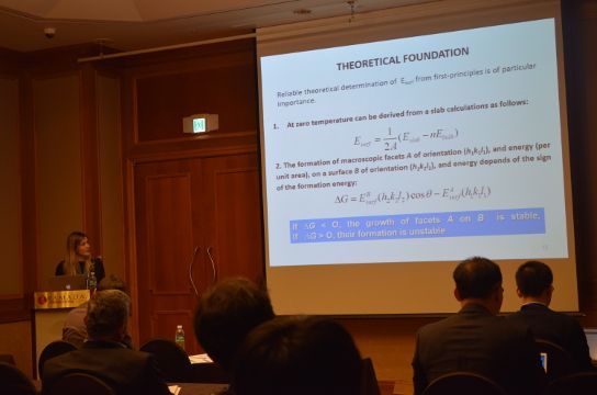 A apresentação feita na Coreia do Sul tem autoria também de Elson Longo da Silva - docente da UFSCar que orientou a tese de doutorado e é o Coordenador do CDMF - e Juan Andrés Bort - orientador de Gouveia na Espanha. Ela está vinculada a pesquisa que avaliou dois materiais - tungstato de prata (α-Ag2WO4) e tungstato de zinco (ZnWO4) - e a influência da adição de reagentes (surfactantes), no primeiro caso, e da utilização de diferentes temperaturas, no segundo, sobre as propriedades fotocatalíticas (de aceleração de uma reação na presença de luz) desses materiais. Amanda Gouveia explica que, no caso do tungstato de zinco, por exemplo, as amostras obtidas em diferentes temperaturas apresentavam diferentes atividades fotocatalíticas, apesar de terem as mesmas características - exceto no que diz respeito às suas superfícies. "Experimentalmente, não era possível descrever essas superfícies, dizer quais átomos, quais clusters estavam presentes. A modelagem tornou possível essa descrição, relacionando assim as diferentes temperaturas e as superfícies resultantes à atividade catalítica encontrada", acrescenta a pesquisadora.