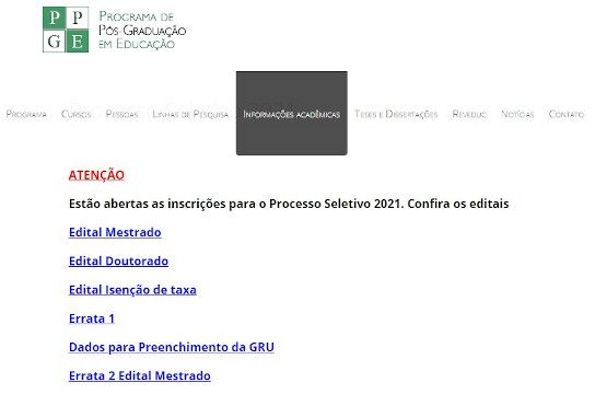 O Programa de Pós-Graduação em Educação (PPGE) do Campus São Carlos da UFSCar abriu processo seletivo para os cursos de mestrado e doutorado, com ingresso no segundo semestre de 2021. As inscrições devem ser realizadas exclusivamente pelo site do Programa até o dia 29 de janeiro, mediante envio de documentação, detalhada nos editais específicos de mestrado e doutorado.