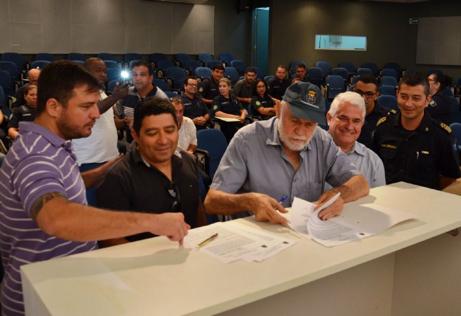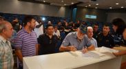 O prefeito Airton Garcia, acompanhado pelo secretário de Serviços Públicos, Mariel Olmo, o comandante da Guarda Municipal, Michael Yabuki, o diretor de Política Institucional da Secretaria de Governo, Samir Gardini e o vereador Marquinho Amaral, assinou na manhã desta segunda-feira (25), no auditório do Paço Municipal, a homologação do contrato da empresa vencedora do processo licitatório para a reforma do prédio do antigo velório, ao lado do Cemitério Nossa Senhora do Carmo.